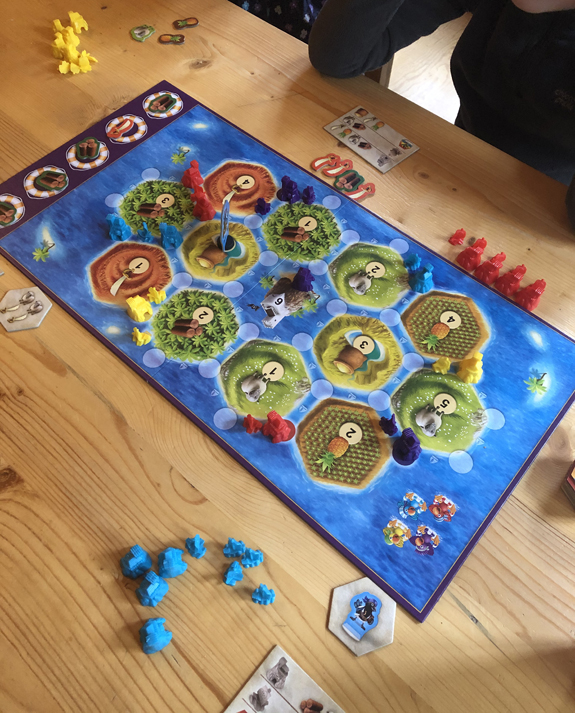Lorsque nos amis nous demandent quel est notre jeu favori à jouer en famille, notre première réponse est toujours Catan Junior! On ADORE tout simplement ce jeu qui nous incite à faire les bons choix et à accumuler les bonnes ressources (des ananas, du bois, des sabres et des sacs d’or) pour être le premier à construire tous ses repaires.